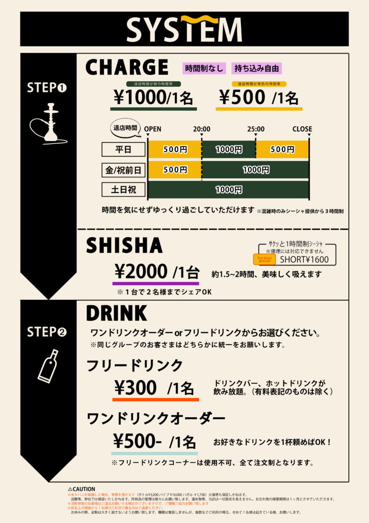 このたび、「一人でも多くの方にシーシャを好きになっていただきたい」という思いから、料金システムを改定いたしました。